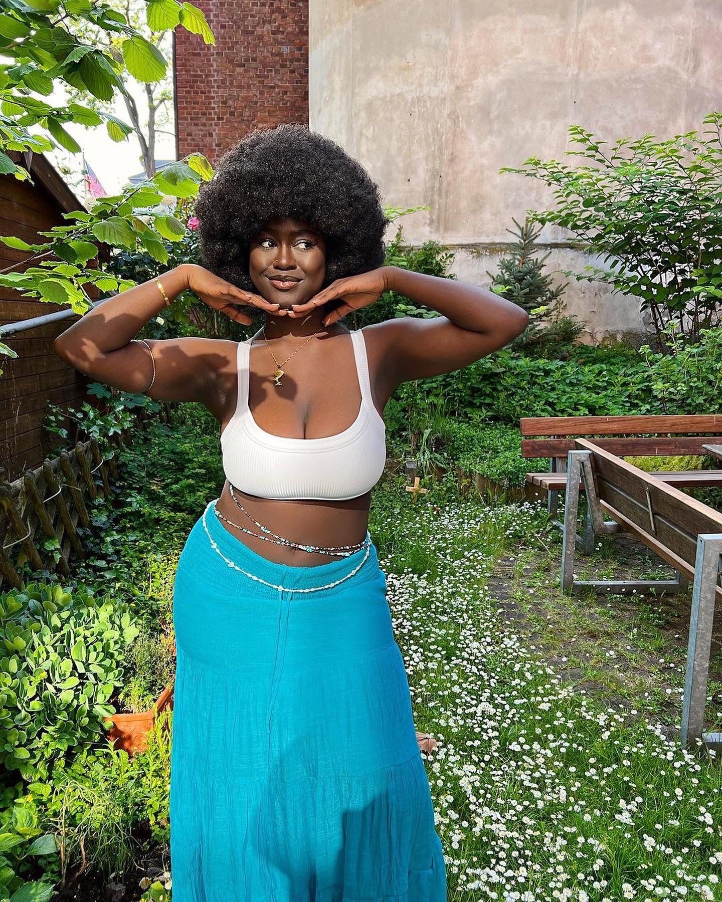 At the lowest point of her squat, her yoga pants revealed her gold waist beads against her smooth skin. A small moment—but unforgettable.